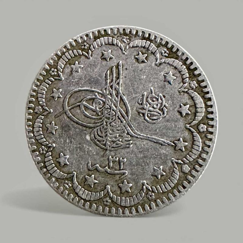 Orjinal 1293 Osmanlı 5 kuruş seri 32 gümüş madeni para ÇT