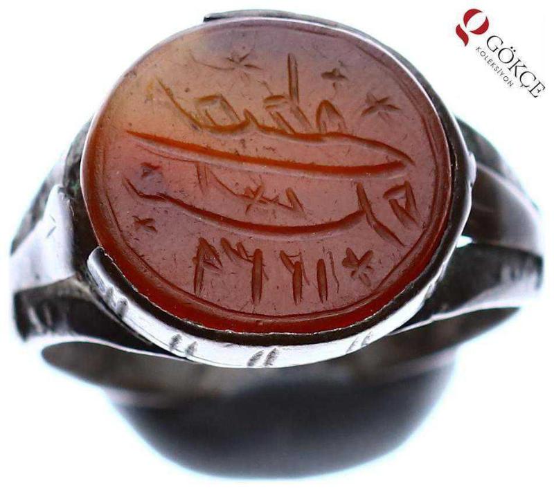 Osmanlı Dönemi Gümüş Akik Taşlı Mühür Yüzük AOB636