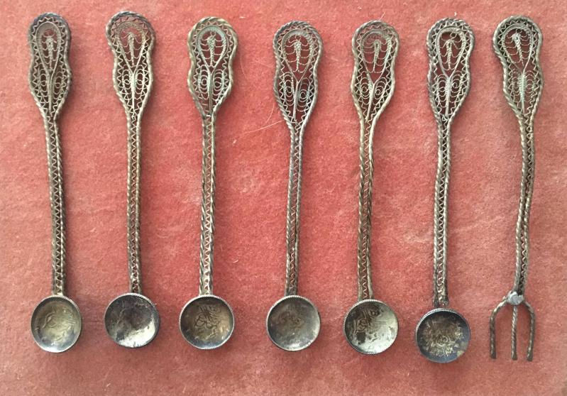 Osmanlı tuğralı antika gümüş çaykaşığı seti