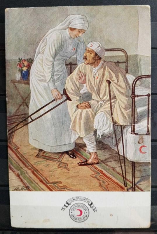 PC.1012 YARALI ASKER VE HEMŞİRE TEMALI HİLAL-İ AHMER CEMİYETİ OSMANLI DÖNEMİ POSTA KARTI