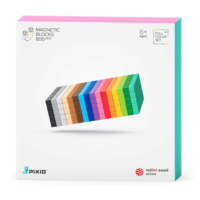 PIXIO-800 INCLUDES SIXTEEN COLORS. The most extensive color palette of all the PIXIO magnetic blocks sets currently in existence put it in a row of amazing creative toys. Your resources are now virtually unlimited.