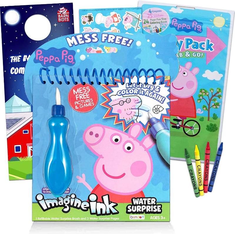 Includes 1 deluxe no mess Peppa Pig paint with water book for kids: includes its own Water Surprise brush. Just fill with water and watch the pages come to life!