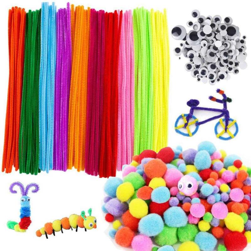 Pipe Cleaners Craft Supplies 500 Pcs, DIY Arts and Crafts Kits for Kids Include 100 Pcs Pipe Cleaners, 250 Pcs Creative Pompoms, 150 Pcs Wiggle Googly Eyes