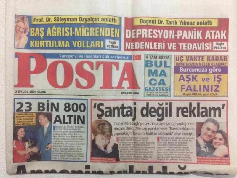 Posta Gazetesi 3 Eylül 2004 - Tamer Karadağlı'ya Seks Kasetiyle Şantaj Yaptığı Öne Sürülen Burcu M