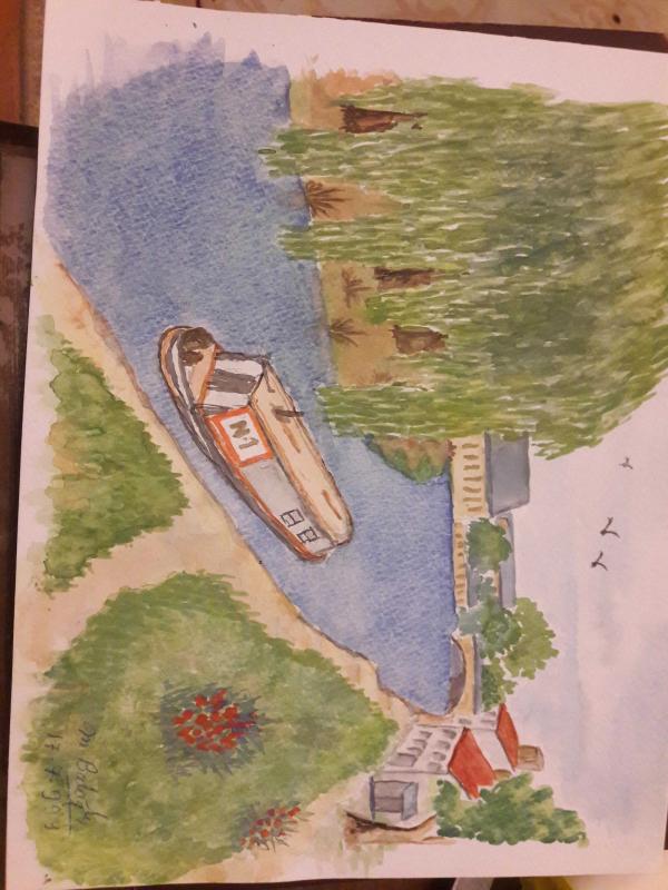 RESİM - GÖKSU ÇAYI ( Beykoz) Salkım söğütler N1 SEYİR MANZARASI SULUBOYA GUAJ KARIŞIK TEKNİK KARTON KAĞIT ÜZERİNE RESİM . EBAT:26×36 cm. RESSAM: M. BALOĞLU 17- 7 -- 999