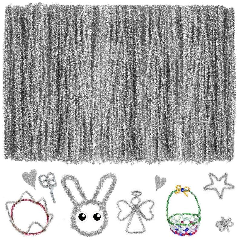 RIMOBUL Pipe Cleaners Craft Chenille Stems 100 Pcs Chenille Cleaners Kids Fuzzy Sticks for DIY Art Creative Crafts Decorations, 6 mm x 12 Inch, Assorted Colors (Silver)
