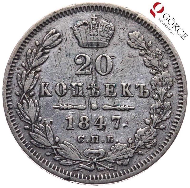 Rusya 20 Kapik 1847 Gümüş ÇT YMP182