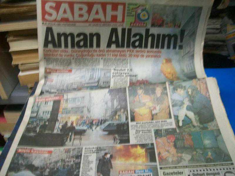 SABAH GAZETESİ 26 ARALIK 1991 (Aman Allahım:PKK Terörü Sonunda İstanbul'da Vurdu,Çoğunluğu Kadın 11 Kişi Öldü 20 Kişi de Yaralandı)