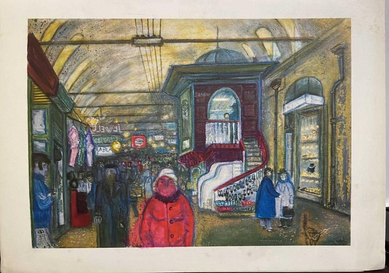 SANAT KARTPOSTALI-CİHAT BURAK TARAFINDAN ÇİZİLMİŞ KAPALI ÇARŞI İÇİ RESMİ,İÇ KISMINA YAZILMAMIŞ,KAPAKLI,RENKLİ, 13 X 17 CM EBADINDA