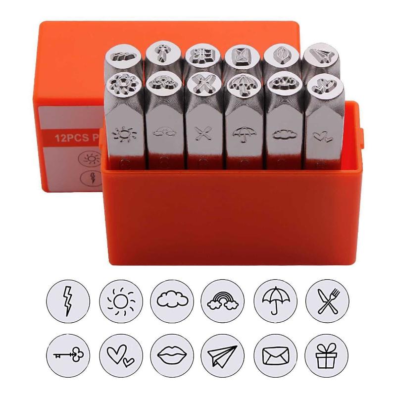 SEEKQUA 12PACK Design Stamps, 6mm 1/4"Metal Punch Stamp. Punching Tool Box, electroplated Hard Carbon Steel Tool, Used for Metal Jewelry, Leather and Wood Printing. (Weather Theme)