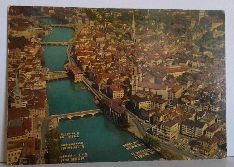 ŞEHİR KARTPOSTALI-ALMANYA/ZÜRİH LİMMAT ESKİ ŞEHİR YUKARIDAN GÖRÜNTÜSÜ,ARKASINA YAZILMAMIŞ, RENKLİ, 12 X 16 CM EBADINDA - 1950'LER, 1960'LAR, 1970'LER, 1980'LER