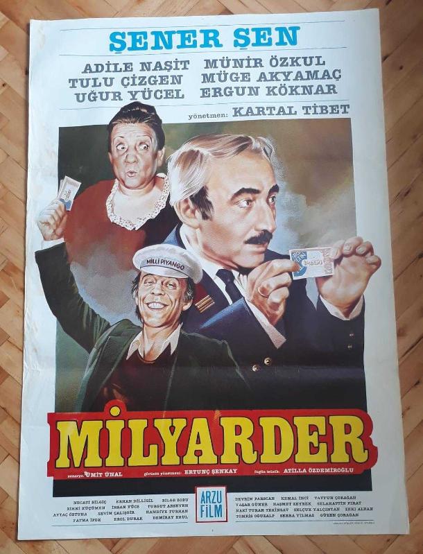 ŞENER ŞEN, MÜNİR ÖZKUL, ADİLE NAŞİT-MİLYARDER 1986 MİLLİ PİYANGO GÖRSELLİ ORJİNAL DÖNEM FİLM AFİŞİDİR