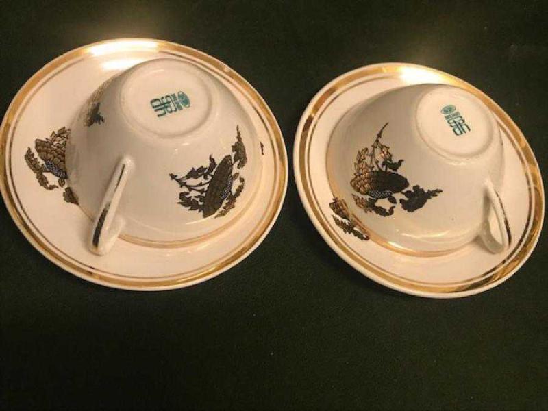 SÜMERBANK CAY FİNCANI CİFT SORUNSUZ PORSELEN ALTIN YALDIZLI DEKORLU 1970 LI YILLARIN TABAKLI FİNCAN