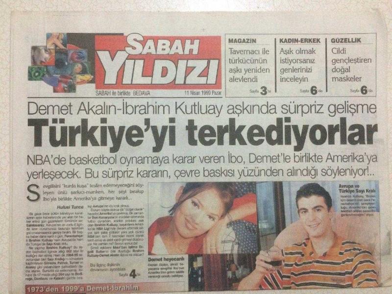 Sabah Gazetesi Sabah Yıldızı Eki 11 Nisan 1999 - Demet Akalın İbrahim Kutluay Aşkında Sürpriz Gelişm
