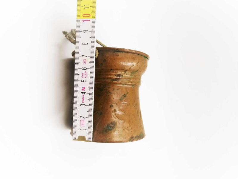 Sanat Taciri- Eskilerden Minik Bakır Bakraç Kova Pirinç Saplı Vitrin Süsü Helke no 23