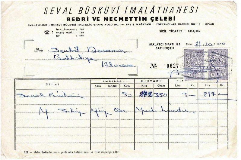 Seval Büsküvi İmalathanesi - Bedri Ve Necmettin Çelebi Fatura EFM1998