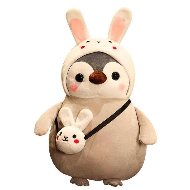 Seyomi Cute Plush Penguin Stuffed Animal Wearing Rabbit Costume, Penguin-Rabbit Animal Plush, Soft P