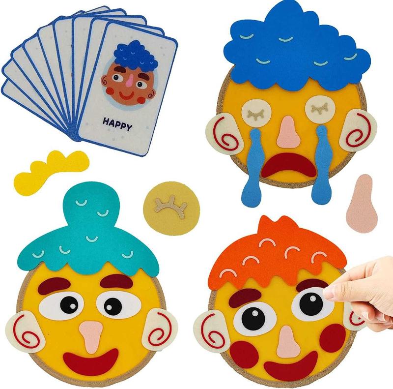 ✅【DIY MAKE FACE AND CARD TOY】 Create any face you like with these multi-use soft felt elements – is it hair, a beard or eyebrows? A smile or a frown? The social emotional board game includes 1 double-sided face board (with 2 skin tones),37 soft facial expressions elements, flash cards what have some sentences with emotional expressions.