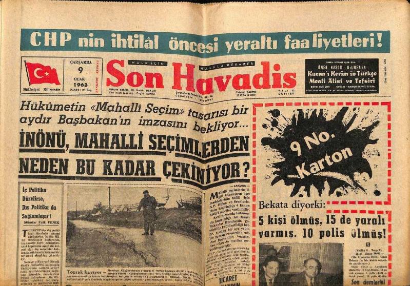 Son Havadis Gazetesi 9 Ocak 1963 - Orhan İlter Gizli Teşkilat Kuruyor GZ74150