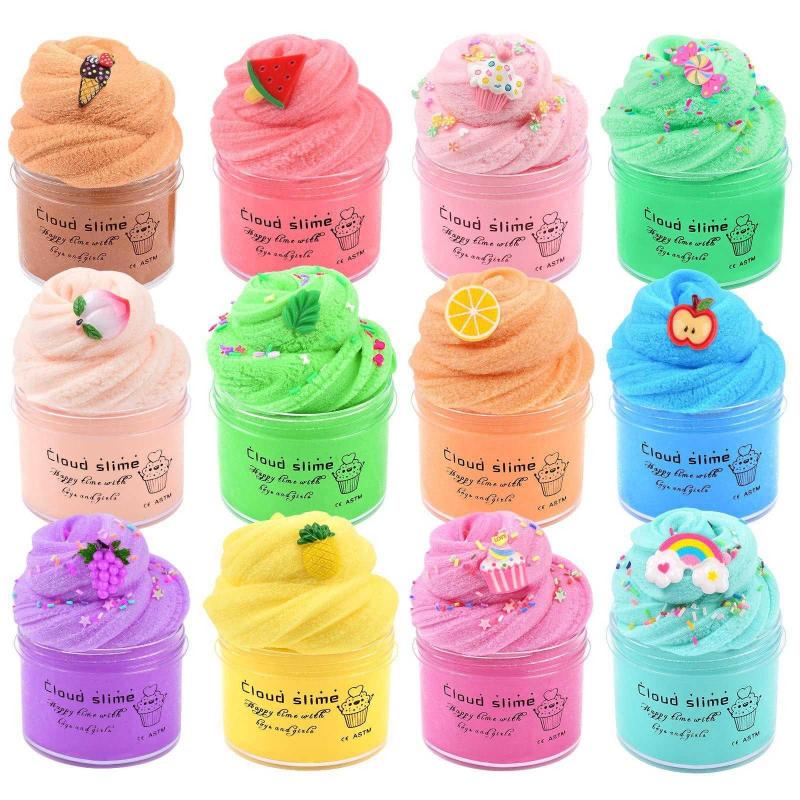 Super Slime with 12 Pack Premium Cloud Slime Kit, Include Candy Ice Cream Cute Slime Charms, Mini Sl