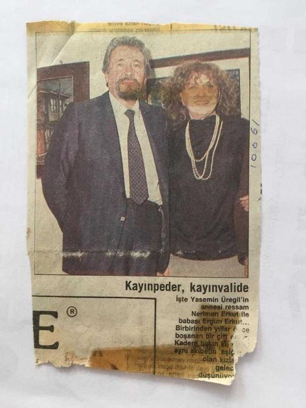 TARIK AKAN'IN EŞİ YASEMİN ERKUT'UN ANNESİ ve BABASININ GAZETEDEN KESİLME FOTOĞRAFI - 13 x 9 cm EBADINDA - NERİMAN & ERGUN ERKUT