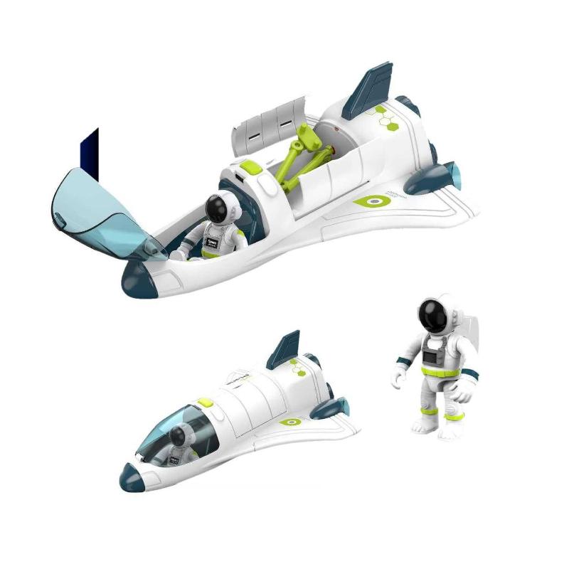 Comes with sound and light space shuttle: The light and music effects of the space shuttle can fully stimulate children's curiosity in space and the desire for aviation knowledge. Press the button on the top to start the space toy, the airplane toy will make a take-off sound and the tail light will flash.