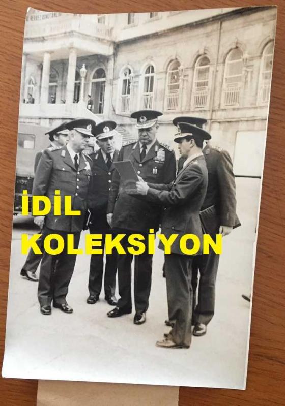 TÜRK SİLAHLI KUVVETLERİNİN 16. GENELKURMAY BAŞKANI ORGENERAL SEMİH SANCAR'IN AJANS BASIMI ORİJİNAL FOTOĞRAFI - 18 x 12 cm EBADINDA - GENELKURMAY BAŞKANI ORGENERAL SEMİH SANCAR, MERKEZ KOMUTANLIĞINDA VERİLEN BRİFİNG SONRASI BAHÇEDE SUBAYLARDAN BİLGİ ALIRKEN, 22 NİSAN 1975