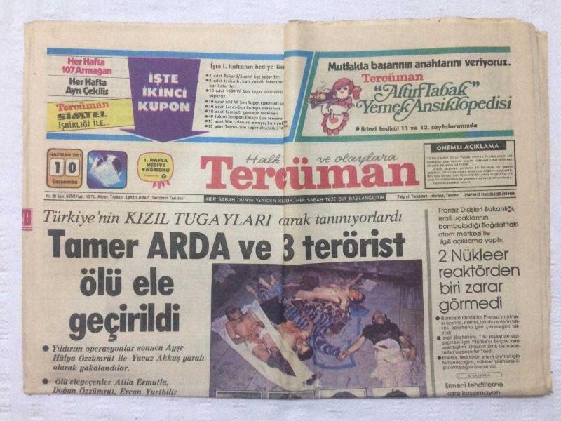 Tercüman Gazetesi 10 Haziran 1981 - Tamer Arda Ve 3 Terörist Ölü Ele Geçirildi - GZ17406
