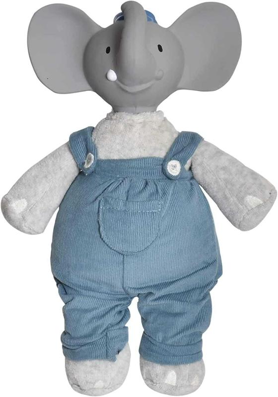 Tikiri Toys Alvin The Elephant Plush Toy with Organic Natural Rubber Head, Ages 6 Months & Up