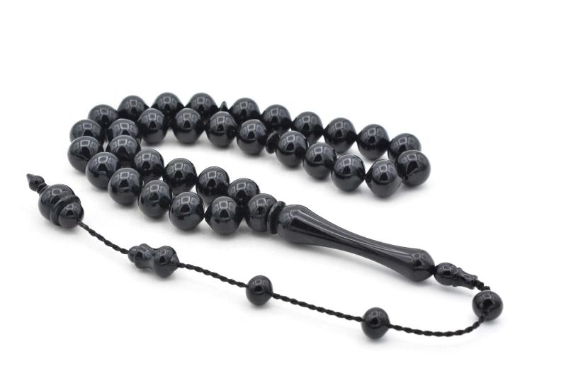 Usta İşi Sistemli Sığırcık Kesim 99 luk Siyah Uçak Camı Tesbih