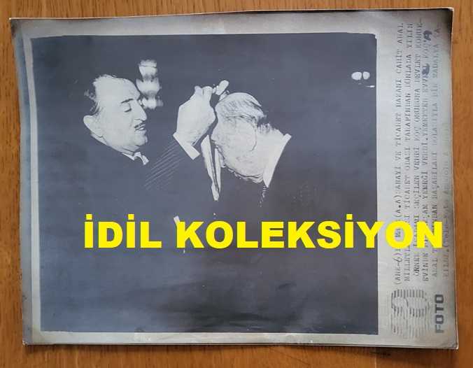VEHBİ KOÇ'UN AJANS-BASIN FOTOĞRAFI - 23 x 18 cm EBADINDA - SANAYİ ve TİCARET BAKANI CAHİT ARAL, MİLLETLERARASI TİCARET ODASI TARAFINDAN DÜNYADA YILIN ÖRNEK İŞADAMI SEÇİLEN VEHBİ KOÇ'A MADALYA TAKDİM EDERKEN ÇEKİLMİŞ BİR KARE