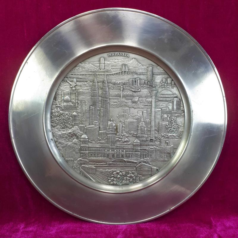 VINTAGE ROYAL SELANGOR PEWTER MALAYSIA 3 BOYUTLU KABARTMA DESENLİ METAL DUVAR TABAĞI