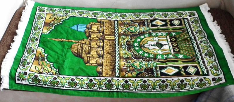 YEŞİL PAMUKLU CAMİLİ BEYAZ PÜSKÜLLÜ SECCADE 114X67 CM