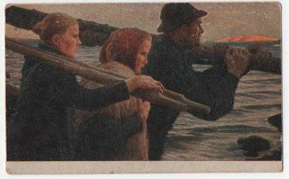 YÜZYILBAŞI DÖNEM DENİZCİ BALIKÇI TEMALI TAŞ BASKI ÇİZİM TABLO KARTPOSTAL