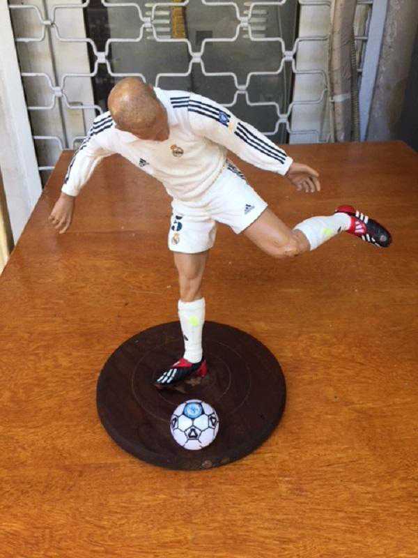FUTBOL OYUN FİĞUR ÜNLÜ FUTBOL ZİNEDİNE ZİDANE FUTBOL TOPUNA ŞUT CEKERKEN OYUN OYNAYAN ORJİNAL POLİ FİĞUROSYON FİĞUR 32 CM YÜKSEKLİK 22 CM ALT TABAN CAPI