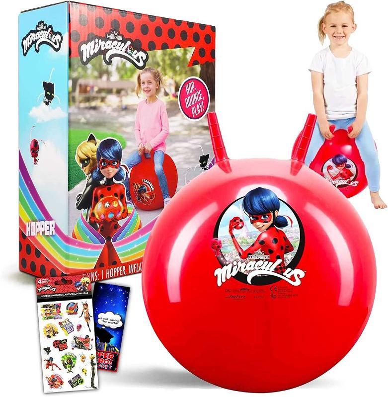 Miraculous Ladybug Hopper Ball for Kids - 15 Inch Miraculous Ladybug Bouncy Ball Bundle With Miraculous Ladybug Stickers, and More (Miraculous Ladybug Outdoor Toys).
