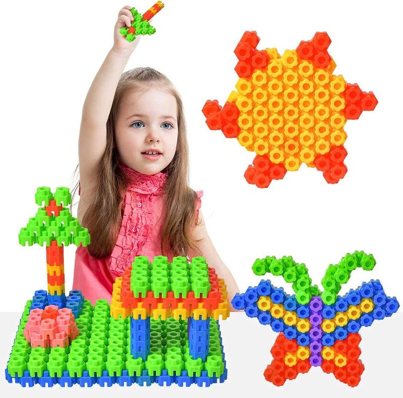 eaclqins 500 Piece Building Blocks Kids STEM Toys Educational Building Toys Interlocking Solid Plastic Educational Kit for Preschool Boys and Girls 3+, Creative Kids Birthday Gifts (Hexagonal Blocks)