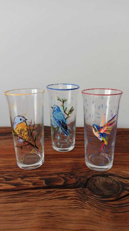 kuş desenli cam bardak seti 3'lü